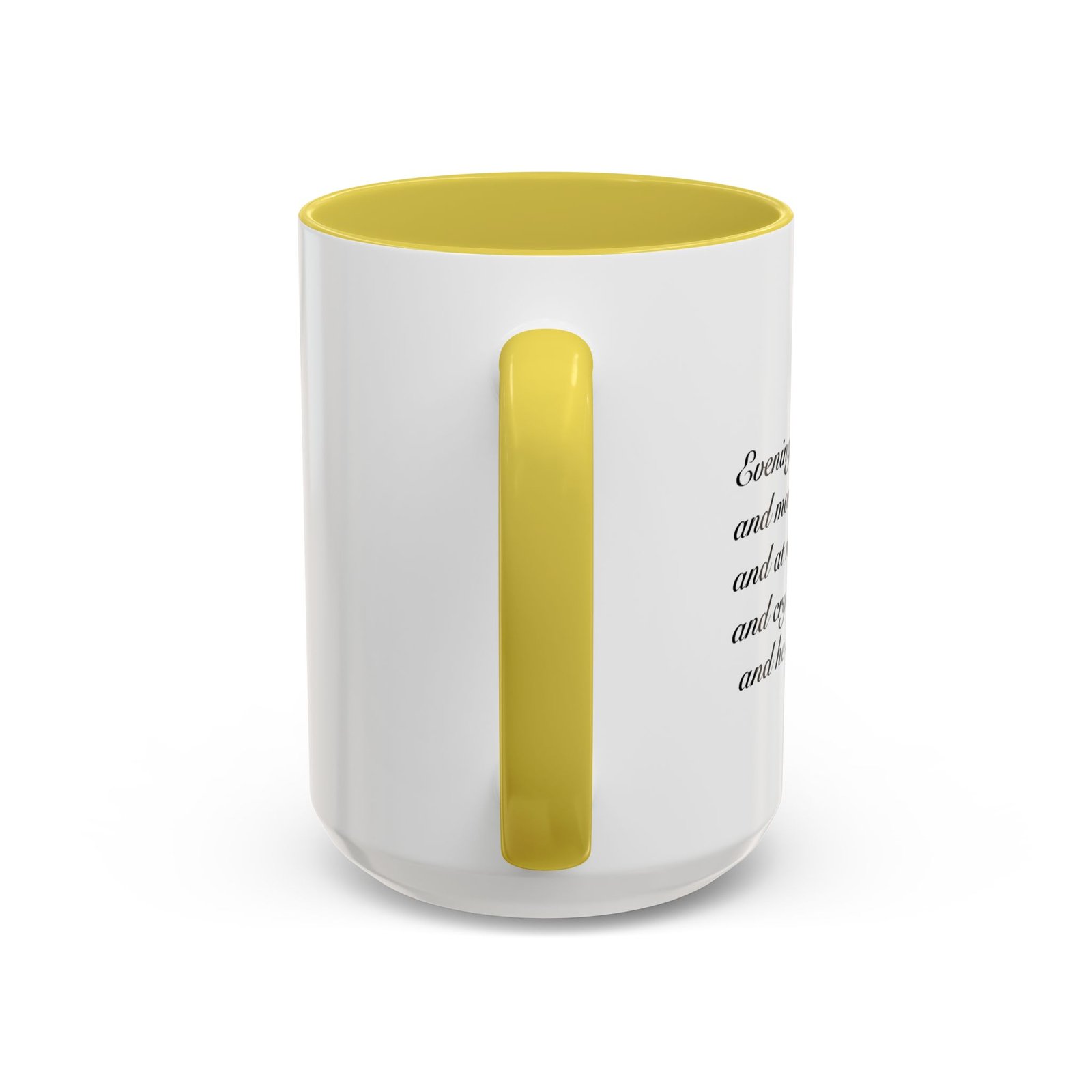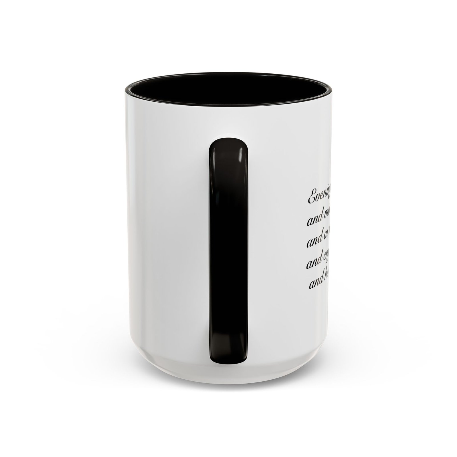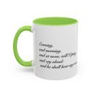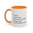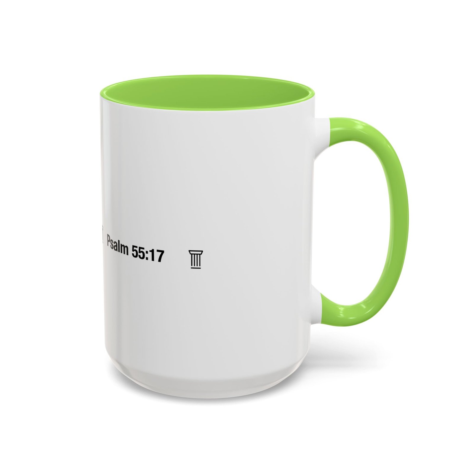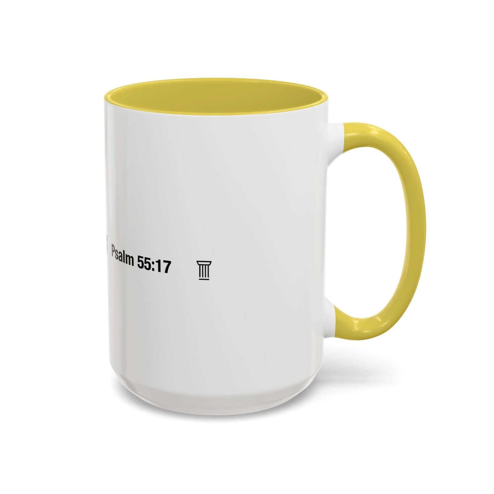 A comforting, everyday mug that carries a quiet promise. Smooth glossy ceramic blooms with crisp printing and a chosen accent color on the handle and interior. The subtle scripture reference "Evening and morning and at noon I will pray, and cry aloud, And He shall hear my voice- Psalm 55:17" and minimal iconography sit like a gentle reminder on the rim of your morning routine — a small moment of stillness before the day begins. It feels warm in the hand thanks to the easy-grip C-handle, and holds either a humble 11oz cup of coffee or a generous 15oz pour for slower sips. Durable and bright, this mug moves from kitchen counter to office desk without losing its shine, and the dishwasher- and microwave-safe finish keeps care simple so the message stays with you.